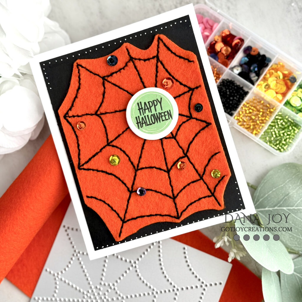 I know there are a lot of people who truly enjoy Halloween. For me it’s just okay. LOL What I love most about the day is giving out candy to the sweet kids and checking out their costumes. Let’s just say I prefer a fun halloween over a spooky one. So this Cobweb Coverall die was perfect for a not so scary halloween card.
