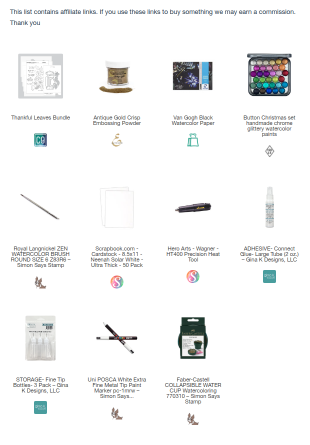 Here are the supplies I used on the card. Affiliate links have been used at no cost to you. So now it’s your turn to make a fall card with a WOW factor. Happy creating.